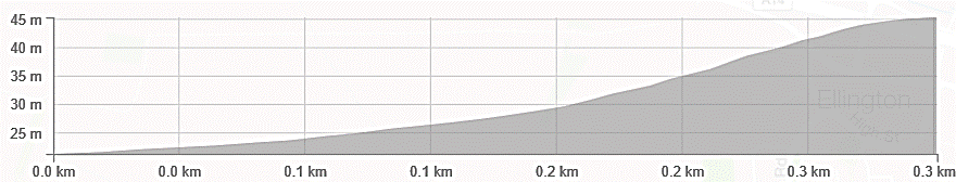Woolley Hill is a dead straight 300m ramp reaching a maximum gradient of nearly 20%. It can be seen from the junction with the A14 and appears to be a wall. The view from the top is about as impressive as it gets in Cambridgeshire but to reach it requires a very nasty 45 seconds of climbing. The road is beautifully peaceful as you roll towards your obstacle. The closer you get, the more intimidating it looks until you suddenly feel your front wheel lift and you begin to click down your gears. The road steepens every pedal revolution until you are forced out of the saddle. Reach the top, turn around and survey the view.
